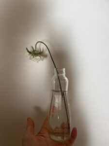 家に持ち帰ったら花瓶がなかったのでペットボトルを半分に切って花瓶にしました。